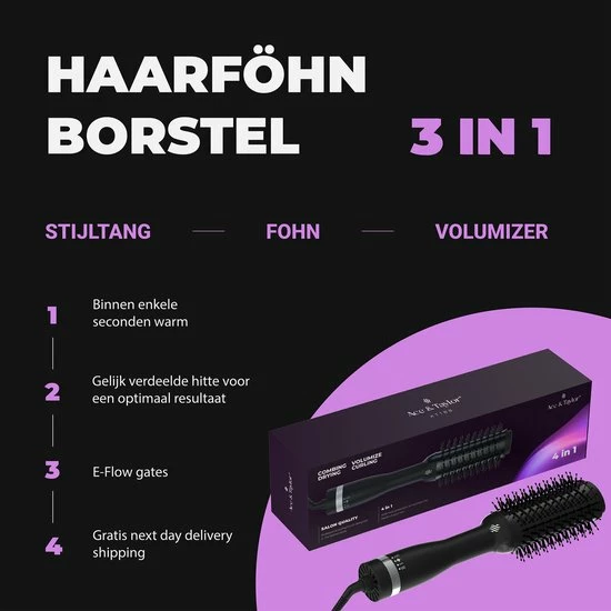 Inhoud verpakking: 1x Ace & Taylor Föhnborstel, 1x handleiding, 2x haarclips