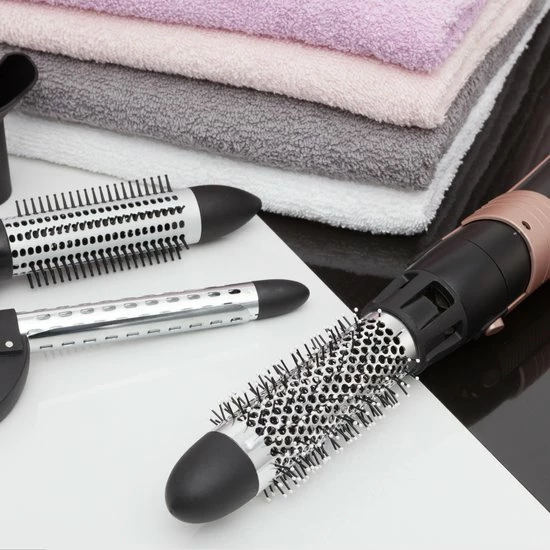 De fohnborstel heeft zes verschillende borstels waarmee je slag of volume creëert voor elk vorm van haar. Dankzij de 3 temperatuurniveaus en het vermogen van 1200 W kun je zowel de krullen fixeren of volledig steil haar creëren.