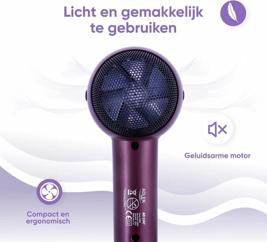 Door de ergonomische vorm en gewicht van de fohn is het een ideaal apparaat die je kunt gebruiken zonder dat je het voelt in je armen.