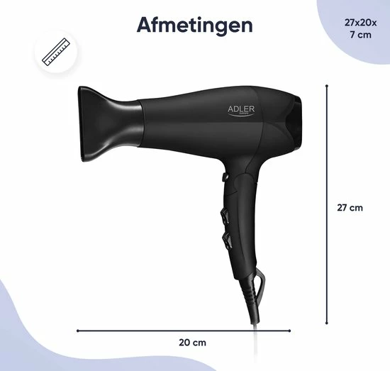 De haardroger is ideaal voor elk vorm van haar. Het is een krachtige haardroger die zorgt voor een snelle fohn na de douche. De haardroger heeft drie verschillende temperatuurstanden en twee verschillende snelheden. Ook komt de haarfohn met 2 opzetstukken: een dunne styling mondstuk en een diffuser die zorgt voor meer volume in je haar.