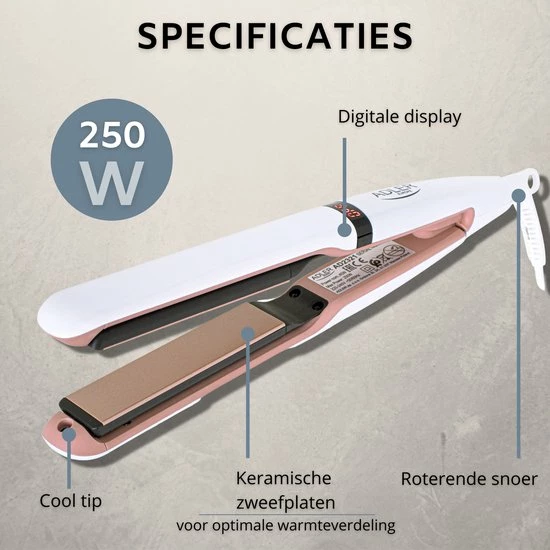 De keramische coating zorgt voor minder wrijving, optimale bescherming van het haar en ultra glad haar.