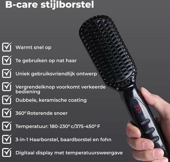 Natuurlijk is mooi, verzorgd haar voor een vrouw erg belangrijk. Door uw haar goed te verzorgen geeft u een extra zetje aan uw zelfvertrouwen en uitstraling. Met de B-care stijlborstel cre?ert u een verzorgd haar als nooit tevoren!