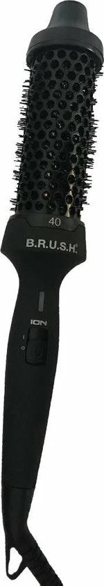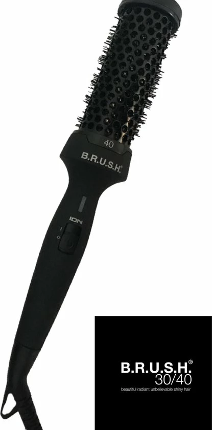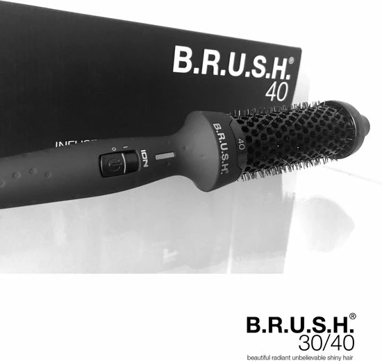 De B.RUSH Warmteborstel 40 mm is een warmteborstel waarmee je prachtige krullen en/of volume in het haar kan creëren. De B.RUSH Warmteborstel is geïnfusseerd met Keratine, Arganolie en Macadamiaolie. Dit zorgt voor een ultra glanzend, pluisvrij en glad haar. Omdat de borstel Ionic Technologie bevat wordt door de positieve ionen het haar geneurtraliseerd waardoor je een prachtig pluisvrij kapsel hebt. De warmteborstel over een Soft Touch Technology, wat wil zeggen dat de borstel een rubberized coating heeft.