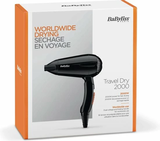 Heb jij ooit een reisf?hn gezien die zo krachtig is? De Travel Dry 2000 F?hn 5344E van BaByliss is d? krachtigste van het moment! Naast zijn kracht in wattage, blaast hij ook nog een 79 km/uur. Je hebt op reis je haar nog nooit zo snel droog gehad met een compacte reisf?hn. En omdat hij zo goed is, krijg je 3 jaar garantie op deze f?hn!