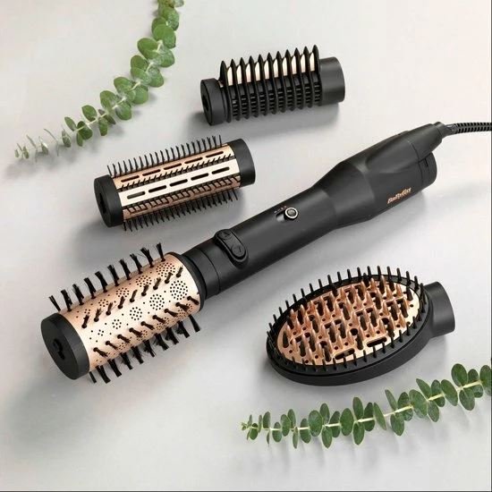 De roterende f?hnborstels van BaByliss kenmerken zich door hun krachtige motor, de verdeling van de gaatjes in de borstelopzetstukken en de keramische coating. Zo ook bij de Big Hair Dual Luxe AS970E van BaByliss. Aan de bovenkant van de borstel zie je meer gaatjes, dan aan de onderkant. Deze verdeling zorgt voor een perfecte en evenredige verdeling van de lucht over de hele borstel. Zo style je iedere lok even mooi en hoef je deze minder vaak te bewerken. De kleine vernieuwde motor is krachtig en klein, waardoor ook het handvat mooi smal is en de f?hnborstel fijn in je hand ligt.