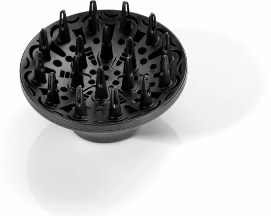 - De diffuser, die zorgt voor een goede verspreiding van de positieve en negatieve ionen, is onmisbaar voor het vormen van zachte, stralende krullen.