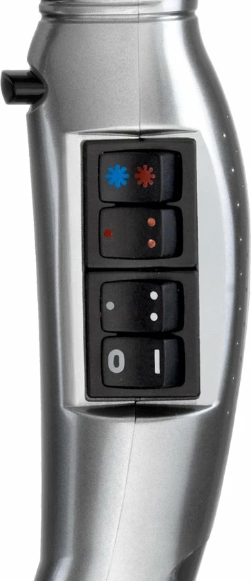 De f?hn heeft 2 temperaturen en 2 snelheden om uit te kiezen. Afhankelijk van je haardikte en wat je wil doen: drogen of stylen, kies je de juiste combinatie. Je krijgt er twee smalle blaasmonden bij van 4 x 75mm en van 6 x 90mm. Daarnaast krijg je er ook een grote diffuser bij. Het snoer is extra lang, namelijk 2,8 meter. Goed om te weten: de coolshot is niet vergrendelbaar.