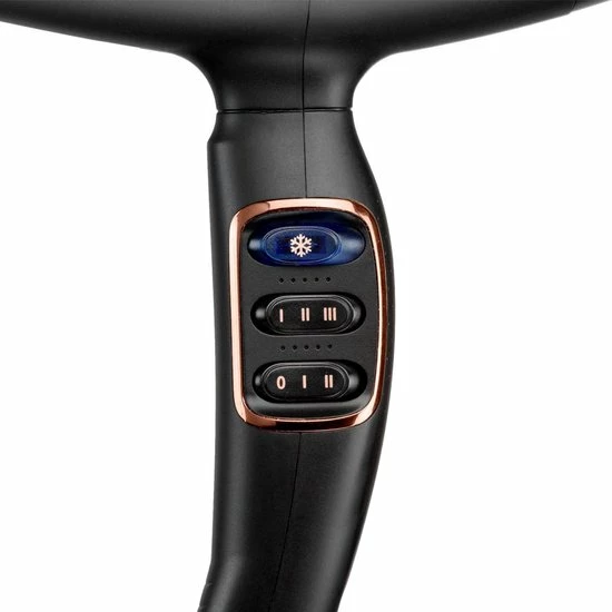 De f?hn heeft 3 temperaturen en 2 snelheden om uit te kiezen. Afhankelijk van je haardikte en wat je wil doen: drogen of stylen, kies je de juiste combinatie. Je krijgt er een smalle blaasmond bij van 8 x 80mm en een grote diffuser van 150mm. Het snoer is langer dan ooit, namelijk 3 meter!