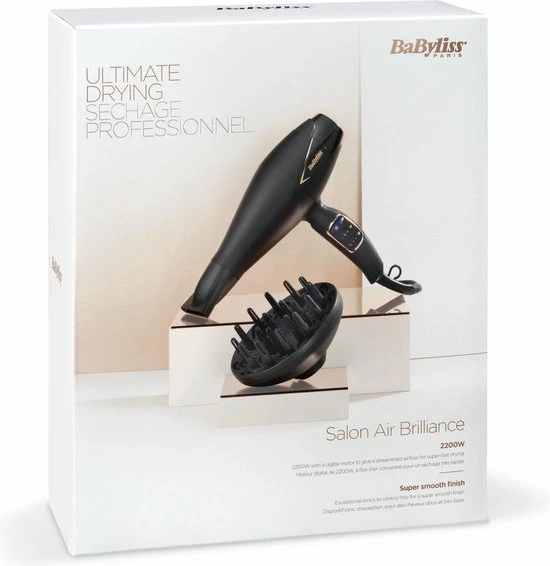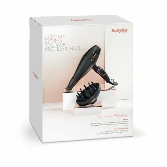 Met de Salon Air Brilliance F?hn D665E van BaByliss haal jij de beste f?hn in huis met de nieuwste technologie?n, zodat je zelf professioneel aan de slag kan.