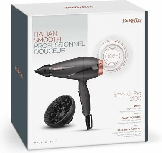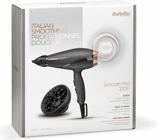 De Smooth Pro 6709DE f?hn van BaByliss heeft een professionele AC-motor. Dit is een krachtige motor die 106 km/uur lucht blaast en 5x langer meegaat dan f?hns met een DC-motor. Dat geeft de garantie op deze f?hn ook aan, want je krijgt 5 jaar garantie!