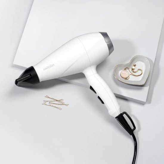 Bij de haardroger van BaByliss krijg je een smalle blaasmond van 6 x 75 mm. Doordat hij zo smal is kan er geconcentreerd lucht uit de blaasmond komen en krijg jij je haar mooi strak gestyled. Je kunt hierdoor wat preciezer met iedere lok aan de slag. Kies uit de 2 snelheden en 3 temperatuurinstellingen wat past bij jouw haar en manier van stylen. Sluit je styling af met een shot van koude lucht. De f?hn bevat een vergrendelbare coolshot en zorgt ervoor dat je gestylede haar langer mooi blijft zitten.