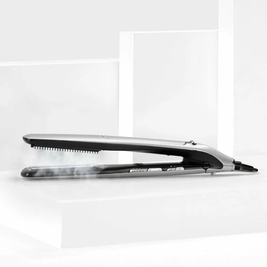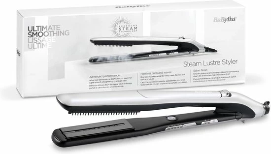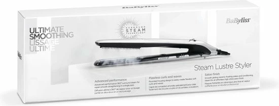 De BaByliss Steam Lustre Styler ST595E is d? ultieme stylingtool met stoom met tot wel 4g hoogglans stoomprestaties. De stoom dringt door het haar terwijl het Advanced Ceramics? verwarmingssysteem zorgt voor een snelle warmteterugwinning voor gelijkmatige, gladde en glanzende resultaten. Stoom wordt onmiddellijk geactiveerd wanneer de platen worden gesloten, zo gaat er geen stoom verloren en hoef jij minder vaak het waterreservoir bij te vullen.