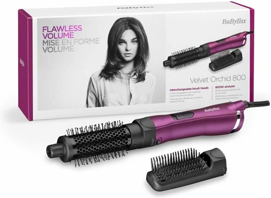 De Velvet Orchid F?hnborstel AS83PE van BaByliss behoort tot ??n van de klassiekers. De krachtige 800W f?hnborstel heeft twee verschillende borstels waarmee je slag of volume cre?ert en het haar goed in model kunt brengen. Het handvat is dun, want de motor hebben we kleiner kunnen maken, zonder dat hij zijn kracht verliest. Hierdoor ligt hij prettiger in je hand.