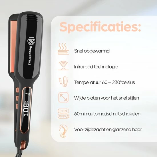 Jezelf een oogverblindende haarlook geven is nog nooit zo gemakkelijk geweest met de Beeperfect? Shine & Protect Infrarood Stijltang. De Beeperfect? Stijltang is uitgerust met de nieuwste technologie?n waardoor beschadigd haar direct voorkomen wordt. De infraroodstralen dringen tot diep in de haarwortels waardoor hij zelfs geschikt is voor dun en poreus haar. Stop daarom direct met het beschadigen van je haar en kies voor de Beeperfect Infrarood Stijltang!