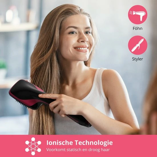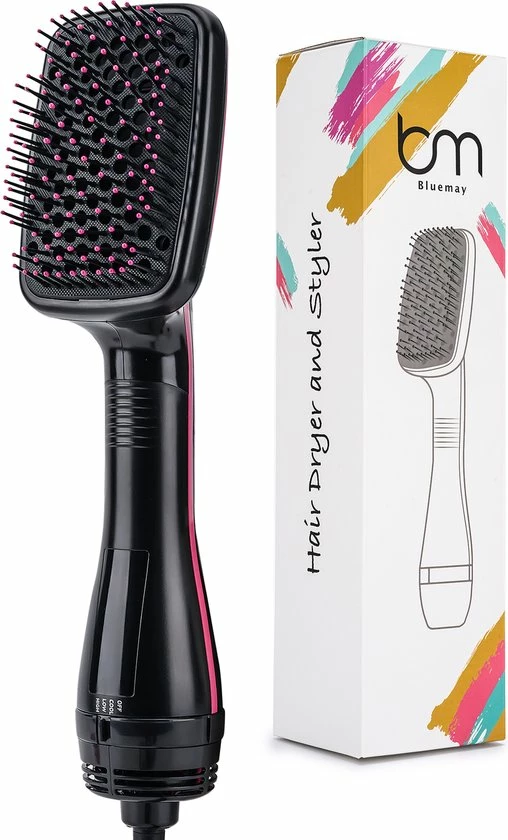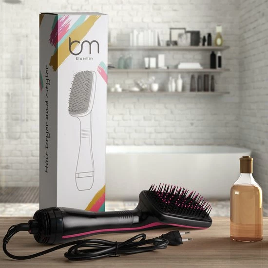 De Bluemay F?hn en Styler is een revolutionaire stylingtool die je de kracht van een f?hn en de precisie van een styler in handen geeft. De F?hnborstel ontwart, droogt en maakt het haar glad in de helft van de tijd. Daarbij vermindert de ionische technologie kroezen en statisch haar. De borstel is dankzij de 3 blaasstanden geschikt voor elk haartype. Dof en pluizig haar is met deze vernieuwde Magic Brush verleden tijd.