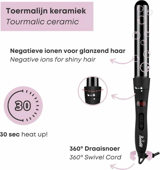 Welke haarstijl wil jij vandaag? Verwissel eenvoudig de opzetstukken en kies voor de look die past bij deze dag. Heb je een feestje, vergadering of wil je er gewoon altijd goed uit zien, met de 2-in-1 krultang van Bombé creëer je een look die past bij elke gelegenheid.