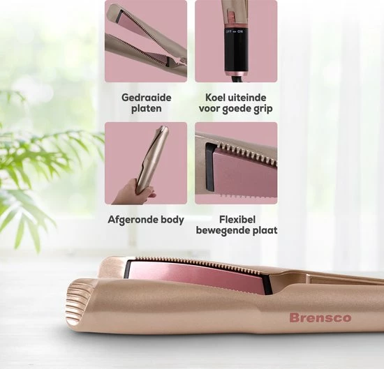 - Digitale temperatuurstand: 5 temperatuurinstellingen van 150-230 ºC. Geschikt voor alle haartypen.