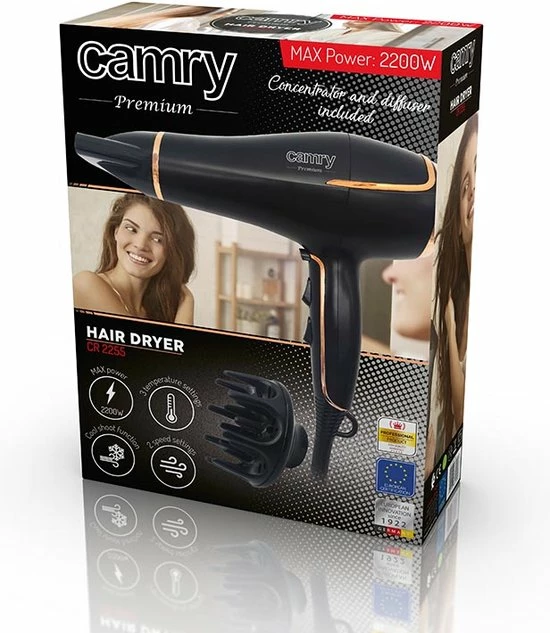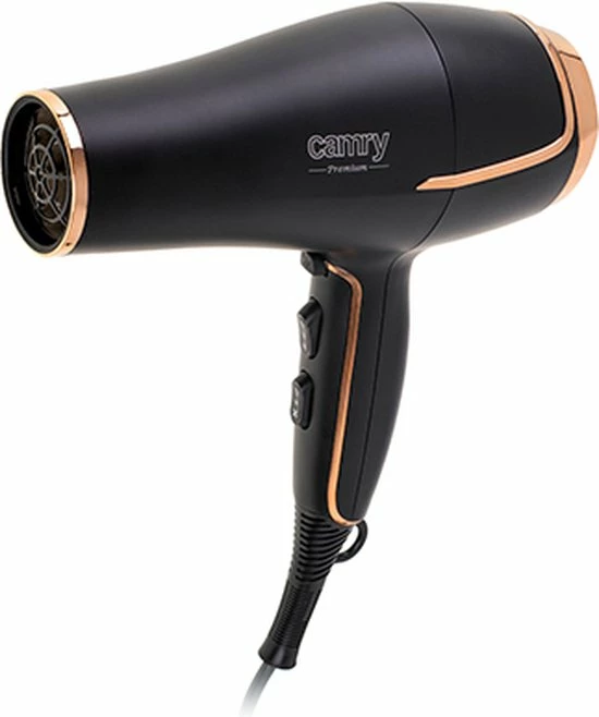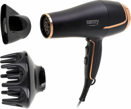 Deze fraaie vormgegeven haardroger van Camry is perfect voor elk type haar. De haarföhn heeft 2 snelheden en 3 temperatuurstanden. Extra handig is de koudeluchtstand.