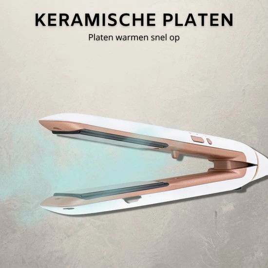 De stijltang beschikt over keramische platen. Dankzij de keramische platen wordt het haar veel minder beschadigd dan bij volledig metalen stijltangen.