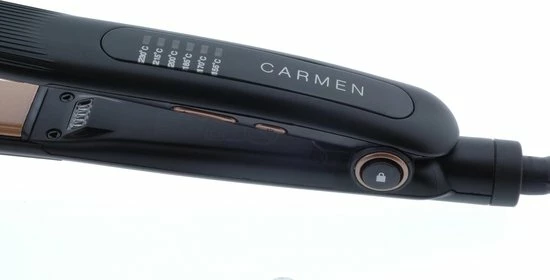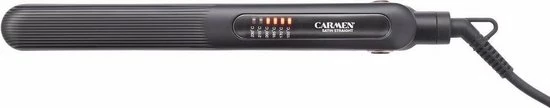 De Carmen CR3200 stijltang is een stijltang met lange afgeronde platen van 110 mm. Met deze afgeronde platen is de Carmen CR3200 stijltang handig voor het creëren van stijl haar of een slag in je haar. De stijltang van Carmen is voorzien van een keramische coating. Dankzij deze coating zal het haar beter glad gestreken worden, en zal kroeshaar voorkomen worden. De stijltang komt met 6 warmtestanden die ingesteld kunnen worden via het LED–display. De warmtestanden hebben een temperatuurbereik uiteenlopend van 155 °C tot 230 °C, die dankzij de coating evenredig wordt verspreid. Door dit temperatuur bereik wordt deze stijltang geschikt voor dik en dun haar.