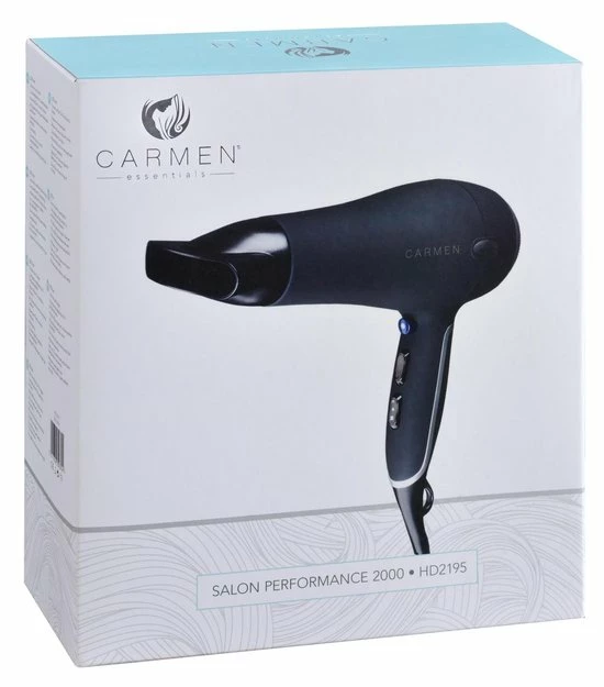 Ken je dat? Dat het snoer van een f?hn te kort is, waardoor je de f?hn niet aan de andere kant van jouw hoofd kunt krijgen? Vanaf nu is dat verleden tijd. Dankzij het 2,5 meter lange snoer van de Carmen HD2195 Salon Performance 2000 kun jij vrij bewegen met de f?hn. Bij de f?hn zijn twee accessoires meegeleverd, namelijk: een blaasmond en een diffuser. Je hebt keuze uit 3 warmtestanden en 2 blaasstanden. Zo bepaal je hoe je haar wilt drogen, modelleren en welke stand het beste bij je past. Zo gebruik je de hoogste standen wanneer je snel het haar wilt drogen, en de lage standen wanneer je het met een borstel in model brengt. Door het f?hnen af te sluiten met de coolshot functie fixeer jij je haar en cre?er je volume met glans. Naast een standaard blaasmond ontvang je ook een diffuser. Ideaal wanneer je krullen hebt of graag een slag in je haar cre?ert.