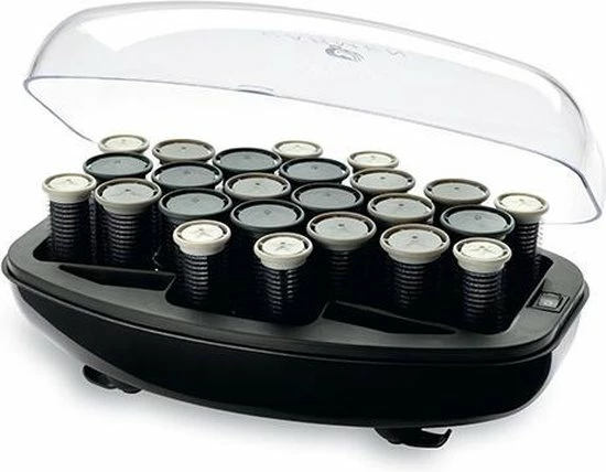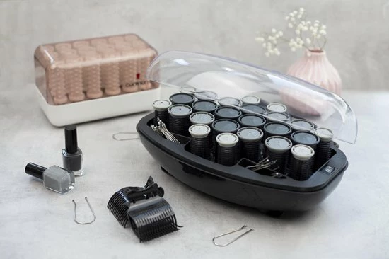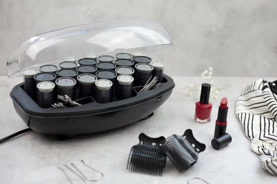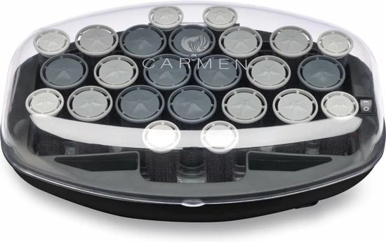 De Carmen C5040 krulset, ook wel bekend als de Carmenset is handig in gebruik en uitermate geschikt voor het cre?ren van volume en verschillende soorten krullen. Van grote natuurlijke krullen tot een weelderige haardos met kleine krullen. De rollers van de Carmen krulset beschikken over een klittenband bekleding wat ervoor zorgt dat de rollers mooi op hun plaats blijven zitten. Met de klaar- voor – gebruik – indicator is makkelijk te zien als de rollers volledig warm zijn. Dit zijn ze al na 5 minuten opwarmen. Na gebruik berg je de set gemakkelijk op. Cre?er een glamourlook met grote natuurlijke krullen of een volle bos met kleine krullen van kapperskwaliteit. Dankzij de 24 bijgeleverde rollers kun je krullen maken in verschillende formaten. Deze krulset bestaat uit acht grote (27 mm), acht medium (23 mm) en acht kleine (20 mm) met klittenband beklede rollers. Inclusief vlinderklemmen en clips in verschillende maten en kleuren.