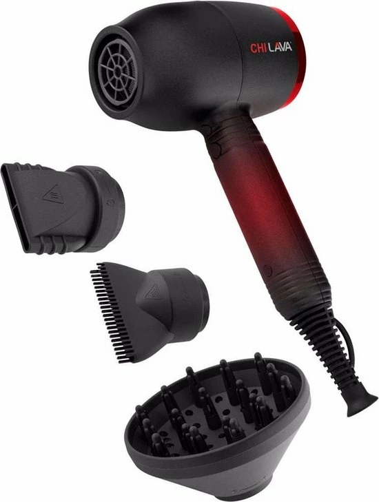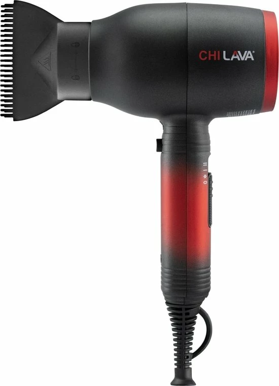 CHI LAVA Dryer is gemaakt met vulkanische lava en keramische verwarming die zachte, consistente warmte biedt tijdens het stylen. Door de combinatie van vulkanische lava en keramiek is styling bij lagere temperaturen mogelijk. Dit zorgt ervoor dat er minder schade aan het haar wordt veroorzaakt en tegelijkertijd zorgt het voor gladde en glanzende resultaten. De keramische lava-ionen maken het haar glad, verminderen pluis/kroezen en bieden vochtige warmte voor gezonder haar. De CHI LAVA Dryer heeft 3 standen: koele temperatuur voor koel drogen, lage luchtstroom en temperatuur voor zacht drogen en hoge luchtstroom en temperatuur voor zeer snel drogen. De f?hn is voorzien van een schuifschakelaar waardoor je f?hn niet per ongeluk uit kan zetten tijdens het stylen. Door de stevige DC motor wordt niet alleen de levensduur van de f?hn verlengt maar bespaar je ook nog eens energie tot wel 50%. Het ergonomisch ontwerp zorgt voor een comfortabele houvast. Bovendien zorgt de extra lange snoer kun je vrij bewegen tijdens het f?hnen.