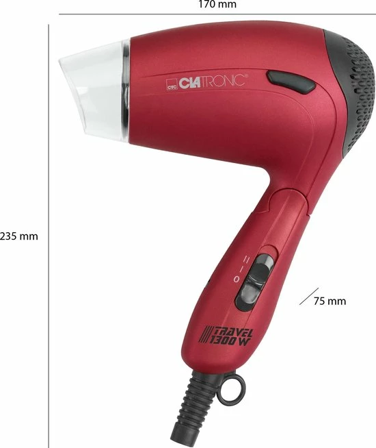 Clatronic HTD 3429 reishaardroger met opvouwbare handgreep en diffuser .