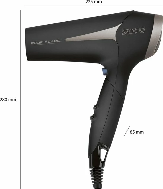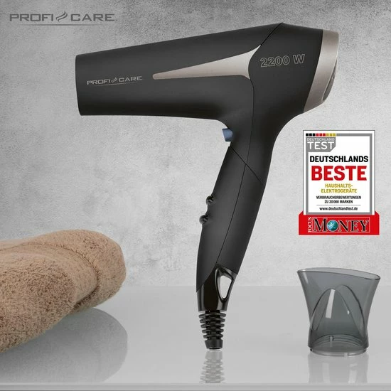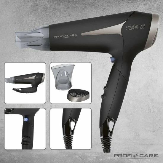 ProfiCare PC-HT 3046 professionele opvouwbare f?hn met 3 temperatuur-/vermogensniveaus, 2200 watt, mondstuk 360? draaibaar (ook zonder te gebruiken), cool shot, oververhittingsbeveiliging, zwart