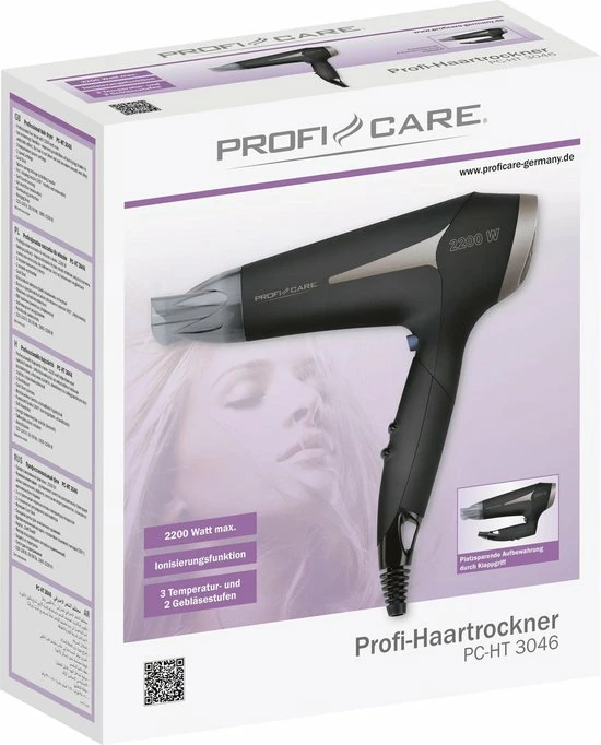 Top gestyled met ProfiCare; met de stijlvolle PC-HT 3046 van ProfiCare krijg je een krachtige professionele f?hn die je haar zachtjes droogt en verzorgt.