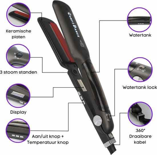 Binnen 25 seconden is de Confidance steampod opgewarmd en kun jij direct aan de slag! De stijltang is door de afgeronde keramische platen ook ideaal om fantastische krullen of beachy waves te cre?ren en glijdt gemakkelijk over elk type haar. Dun en beschadigd haar of juist een volle bos met krullen? De Confidance stoomstijltang maakt je haar glad, laat het haar glanzen en hydrateert in een handomdraai. Geeft volume en prachtige krullen terwijl 80% hittebeschadiging wordt voorkomen in tegenstelling tot de normale krul- en stijltangen.