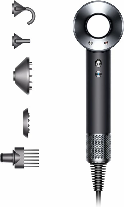 Met de veelzijdige Dyson Supersonic 2021 Zwart droog je zowel jouw steile als krullende haar en breng je het in model zonder dat het pluizig wordt. Dit doe je bijvoorbeeld met het opzetstuk speciaal voor glad haar of de blaasmond met ingebouwde kam. Ook is de Supersonic kleiner, lichter en stiller dan je van een haardroger gewend bent. De digitale V9 motor zit verwerkt in het handvat, wat zorgt voor een fijne gewichtsverdeling en balans. Zo krijg je geen vermoeide arm tijdens het drogen. Op de achterkant van de f?hn kies je uit 3 blaasstanden, 4 temperatuurstanden en een coolshot. Met de coolshot fixeer je jouw haar zodat het langer in model blijft. De intelligente warmteregelaar meet de luchttemperatuur 40 keer per seconde en stelt deze zonodig bij. Zo beschadig je jouw haar niet door een te hoge temperatuur.