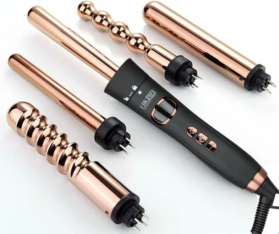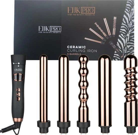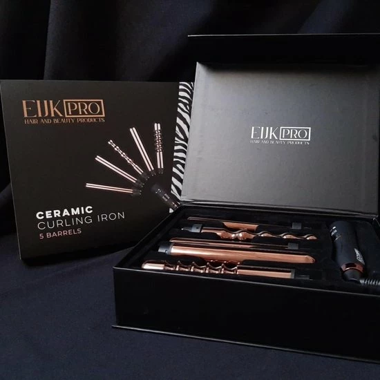 Deze professionele Eijk Pro krultang is geschikt om verschillende krullen maken. De krultangen heben de volgende diktes 19mm, 25mm, 32mm, Bubble Iron 25 mm – Spiral Iron 32 mm – Zwart/Ros? Goud en beschikt over een ionentechnologie en keramische warmte-elementen. De temperatuur is heel eenvoudig naar wens in te stellen. De culing iron wordt in stevige giftbox geleverd dit maakt deze hair curler ook geschikt als cadeau.