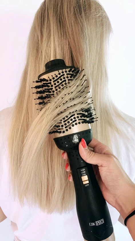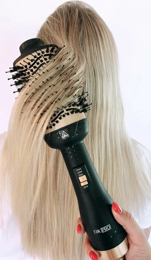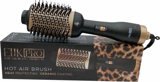 Deze 3 in 1 föhnborstel is ontworpen voor elk haartype. Het is een grove ovale föhnborstel en deze is te gebruiken bij halflang tot lang haar. De EIJK PRO Hair brush wordt gebuikt op handdoek droog haar en functioneert als föhn, krulborstel en styltang in één. Met één apparaat realiseer je een mooie verzorgde coupe. Het haar wordt automatisch met veel glans gepolijst door de nylon borstelpennen die door het haar heen draaien.