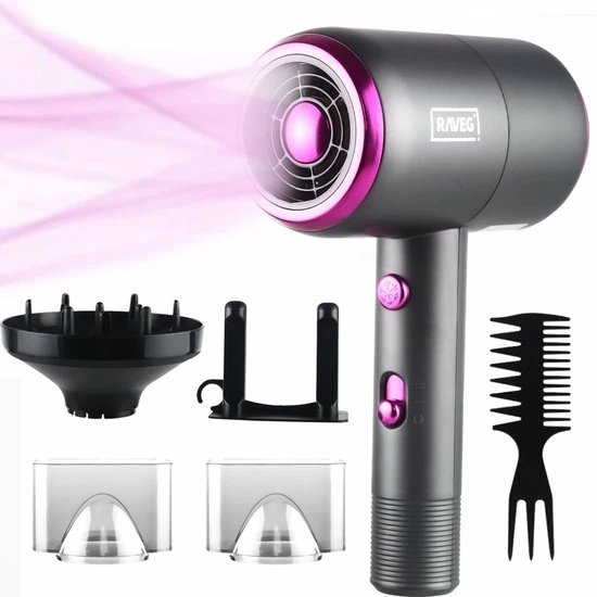 Droog je natte haren op de meest veilige manier met de Raveg föhn. De luxe föhn met diffuser, opzetstukken en ionentechnologie is speciaal ontworpen om 100% veilig te föhnen. Dankzij de motor van 2000W föhn jij je haar in enkele minuten droog. De föhn droogt niet alleen het haar, maar voedt en verzorgt de haarwortels zelfs door de meeste nieuwe technologiën.