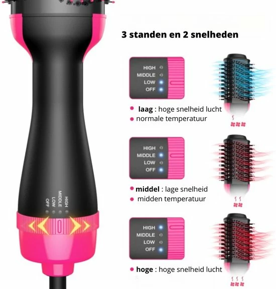 Met 1000W vermogen en verschillende blaasstanden heb je de flexibiliteit om elk haartype in 10-20 minuten in model te brengen. De f?hnborstel is voorzien van een koude-lucht stand, ideaal voor extensions, beschadigd of geverfd haar. Kies voor LOW, MEDIUM of HIGH, afhankelijk van je haartype, dikte of voorkeur: