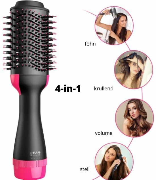 De 4-in-1 f?hnborstel combineert een f?hn, krulborstel en stijltang in ??n. Je droogt en stijlt je haar tegelijkertijd. Geen geklungel met een borstel in de ene hand en een f?hn in de andere. Het ovale ontwerp is ideaal voor het cre?ren van slag of meer volume. De flexibele nylon pins en borstelharen zorgen voor zijdezacht haar zonder klitten. Bovendien geeft het 2 meter lange 360? meedraaiend snoer je volledige bewegingsvrijheid.