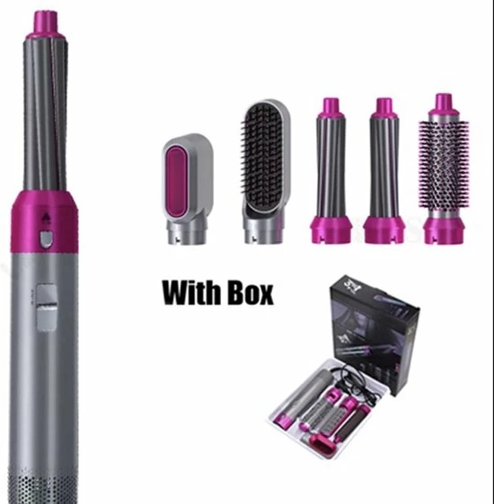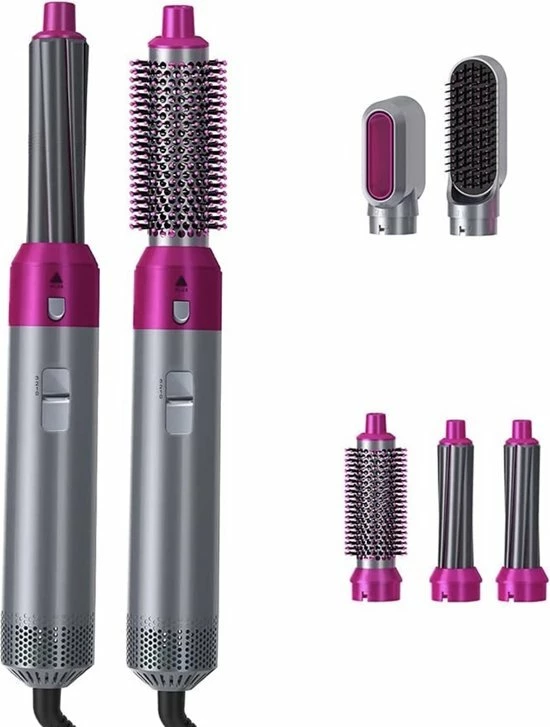 - 5 opzetstukken (föhn, gladde borstel, volume borstel, kruller links, kruller rechts)