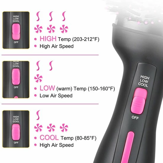 Met 1000W vermogen en 3 verschillende blaasstanden heb je de mogelijkheid om elk haartype in 5-15 minuten in model te brengen. De f?hnborstel is voorzien van een koude-lucht stand, ideaal voor extensions, beschadigd of geverfd haar. Kies voor LOW, MEDIUM of HIGH, afhankelijk van je haartype, dikte of voorkeur: