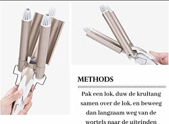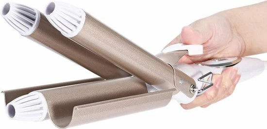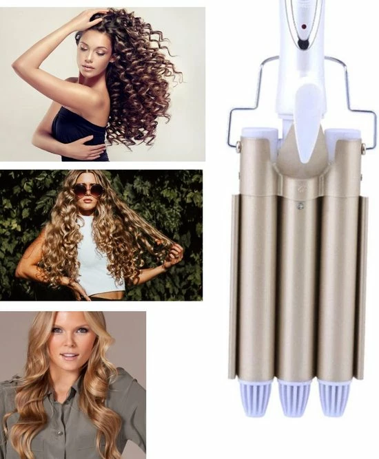 Deze golvenkrultang heeft 3 cilinders waar het haar tussen komt bij het krullen. 22mm/ 19mm/ 22mm, zo kun je de prachtigste golven maken. De zo gehete Sexy ??s?? -golven. De triple barrel wave heeft 3 temperatuur standen en een antislip handvat. De tang heeft een vermogen van 125 Watt en een aan/uit schakelaar. De temperatuur kan van 170? C tot 220? C.