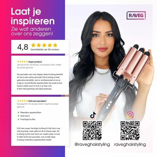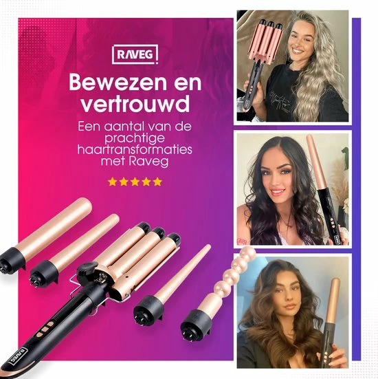 Het maakt totaal niet uit of je nu steil, golvend of krullend haar hebt. Of dat je dun, normaal of dik haar hebt. Met de Raveg krultang kan je meer dan je denkt. En dat ook nog eens in korte tijd, zodat je geen tijd verspilt als je je ?s ochtends aan het klaarmaken bent voor een nieuwe dag!