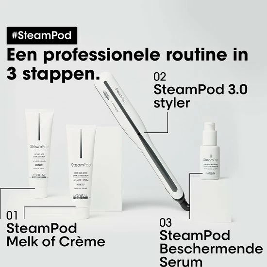 L’Oréal Professionnel Steampod 3.0 is de derde generatie van de iconische stoomstijltang. Dankzij de unieke werking van de gepatenteerde stoomtechnologie style je snel je haar, terwijl het mooi soepel blijft.