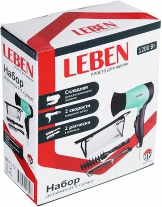 De Leben haardroger Travel Set is de ideale föhn voor op reis en thuis, aangevuld met een borstel, kam en handige reisverpakking. De haardroger is ondanks zijn compacte formaat voorzien van een stevige 1200 watt motor die niet onderdoet voor grotere modellen.
