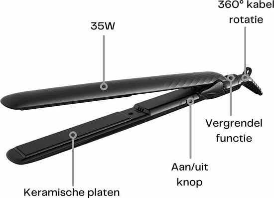 Deze LENTZ stijltang is gemaakt van lange keramische platen (110mm lang en 20mm breed). Ze zorgen ervoor dat je haar er prachtig, steil, glad en pluisvrij uitziet. Verder voorkomen deze keramische platen dat je haar beschadigd wordt tijdens het stylen. Ook glijden ze makkelijk door het haar, ongeacht de dikte van je haar. Twijfel dus niet en kies deze LENTZ stijltang om je haren de hele dag supersteil te houden.