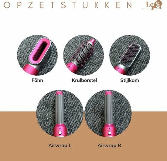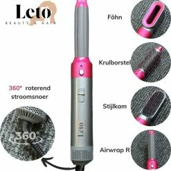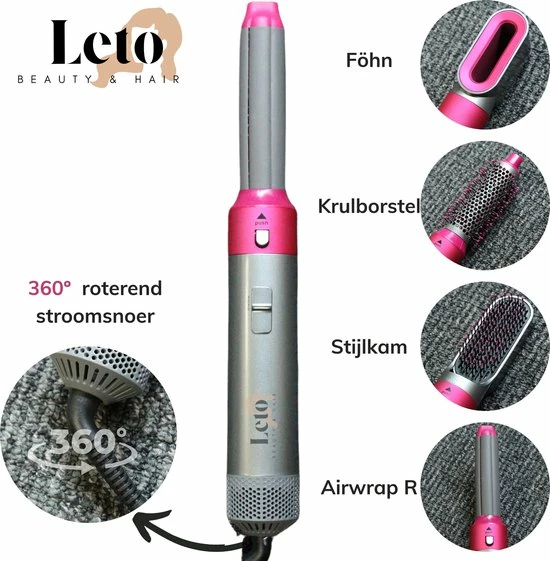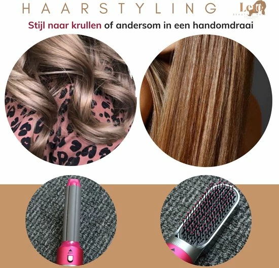 De hoogwaardige materialen ?n de niet schadelijke warmte zorgen ervoor dat jou haar zacht en glanzend zal stralen! Of het haar nou nog nat is of al droog, met de f?hn kun jij direct aan de slag. De warme luchtstroom van deze LETO airwrap geven een egale verdeling van de warmte om de meest mooie resultaten te laten zien en is een verademing voor elk haartype. Voor zowel kort als lang haar kan de alles in 1 f?hnborstel gebruikt worden zodat iedereen kan genieten van een fantastisch kapsel.