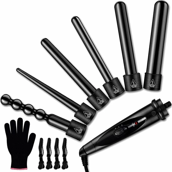 De geavanceerde krultang wordt geleverd met maar liefst 6 verschillende opzetstukken, waardoor het geschikt is voor elk haartype. Ieder opzetstuk beschikt over een andere vorm met verschillende diameters, namelijk: