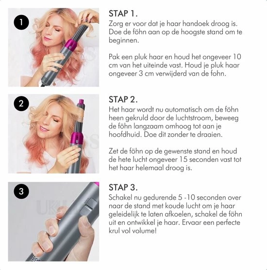 De technologie van de haardroger is erg revolutionair; hij is krachtig genoeg om je haar te krullen of te steilen door alleen lucht te gebruiken.