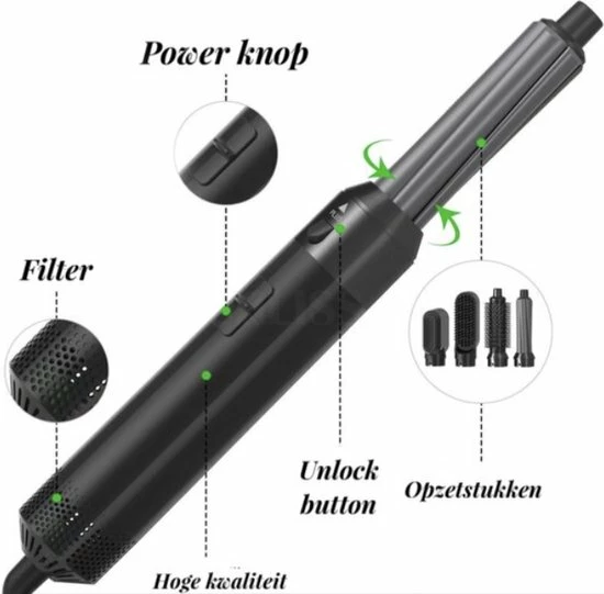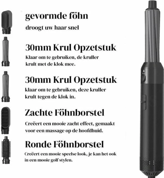 Bent u op zoek naar de perfecte alles in ??n multistyler? Met onze krachtige 5 in 1 multistyler bespaart u veel tijd en kunt u uw haar op een perfecte manier stylen, borstelen en nog veel meer! Door deze handige multistyler kunt u uw haar niet beschadigen. Wat met een normale krultang wel vaak het geval is.