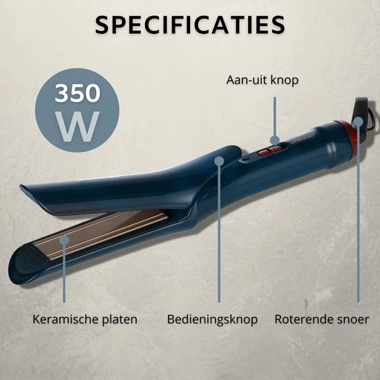De stijltang heeft een vermogen van 50W waardoor de stijltang zelfs de meest krullende lokken effectief recht maakt.