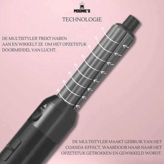 MOONIE’S® 5 in 1 Multistyler is een goedkoper alternatief dan de originele Airwrap. De motor kan hierdoor niet zo krachtig zijn dan het model van ~500 euro.